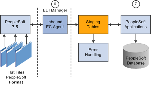 The following diagrams illustrate the PeopleSoft 9.0 inbound flat file EDI transaction process using the PeopleSoft format.