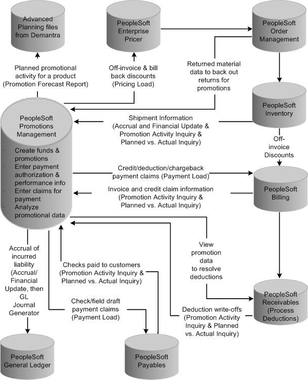 PeopleSoft Promotions Management integrates with Payables, Billing, Receivables, and General Ledger to complete the payment cycle.