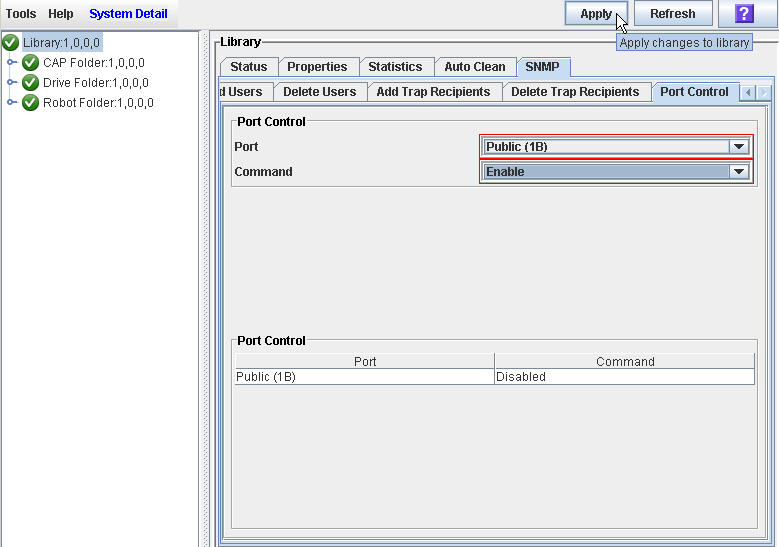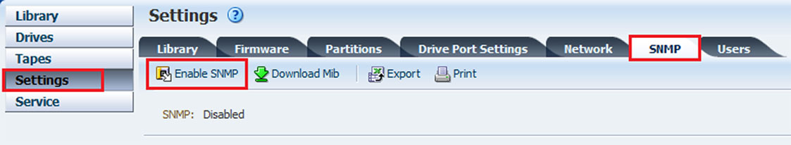 By default, the SL150 library ships with SNMP disabled. To enable SNMP, perform the following.