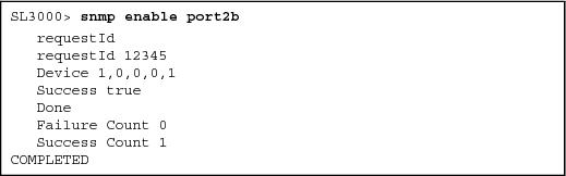 Note – If the library includes the Dual TCP/IP feature, this command enables SNMP on both the 2B and the 2A port; you do not need to issue a separate command for the 2A port.
