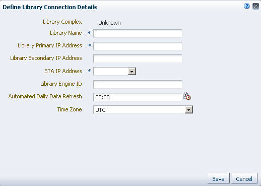 Library Name – Enter the name you want to assign to the library. This name will be used to identify the library throughout the STA user interface screens. You may want to use the library host name.