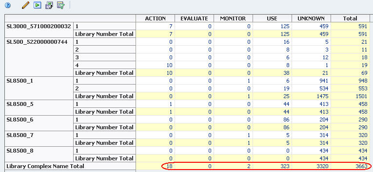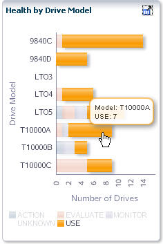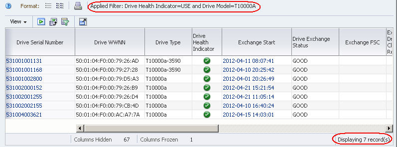 In the example below, the Drives – Overview screen is displayed, filtered to display only T10000A drives with a “Use” health.