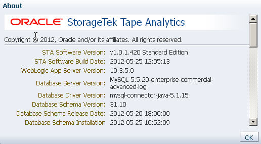 Use this procedure to display version information about the STA application and supporting software. This information is useful whenever you contact your Oracle support representative.