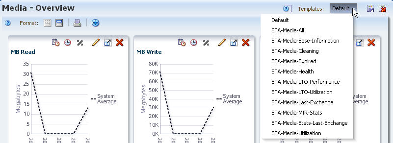 Displays throughput and efficiency information for the last exchange for each piece of media. Your Oracle support representative may ask you to use this template prior to submitting error log information. |