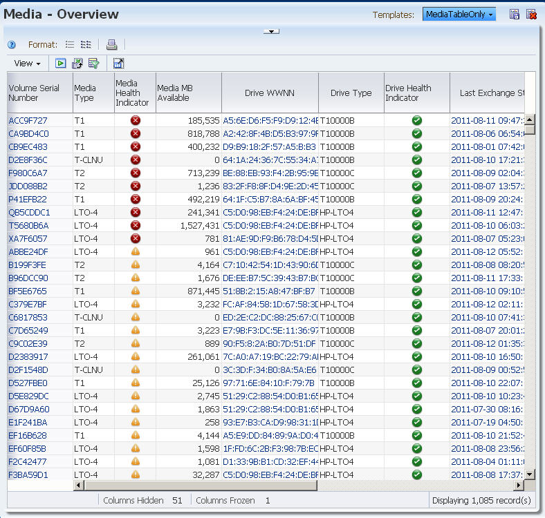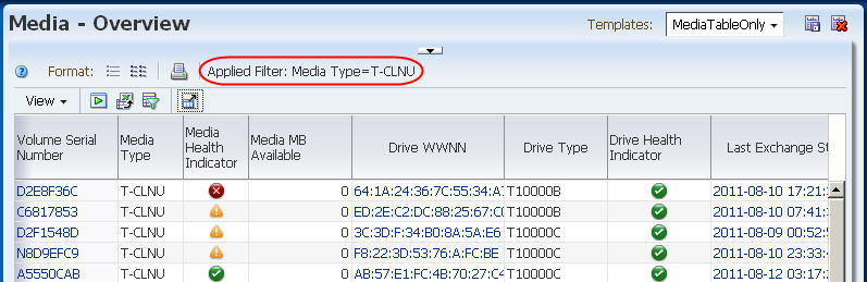 In this example, the screen is modified by applying the filter, “Media Type=TCLNU”.