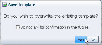 The Save Template dialog box appears, and the current template name is supplied in the Template Name field.