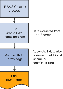 For IR21 and Appendix 1 forms, a process enables you to extract the data from the IR8A/IR8S forms. You can then enter additional data and print the forms in the required IRAS format.