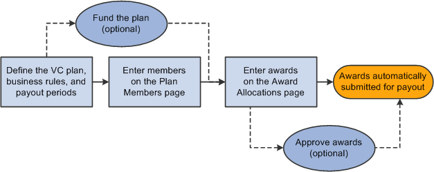 This diagram illustrates an ad hoc plan and includes the steps to fund the plan and approve awards.