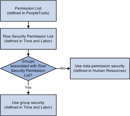 If you do not have groups assigned to a row security permission list, the system automatically uses HRMS data permission security.