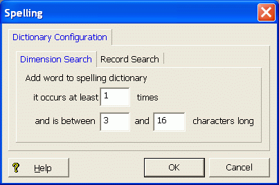 | it occurs at least n times | Sets the minimum number of times the word must appear in your source data before the word should be included in the spelling dictionary. |