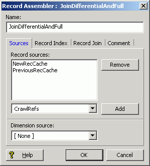 The two record sources are the PreviousRecCache and NewRecCache record caches. The order in which you add these record sources is not important, because their priority is set in the Record Join tab (below).
