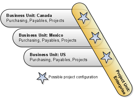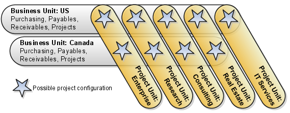 Business units are subsets of an enterprise that perform one or more business functions and can be consolidated in both a managerial and legal hierarchy. Project accounting is an example of a business function that is set up by business unit. Other examples are billing and revenue management, customer contract management, and payables invoicing.