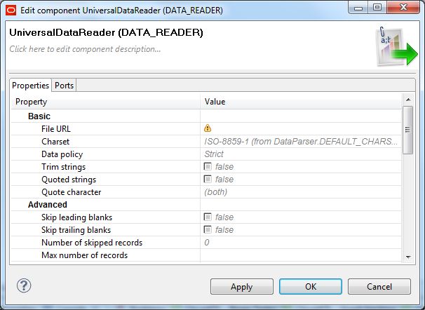The Reader Edit Component dialog is where you configure the Reader as to how it should handle the source data: