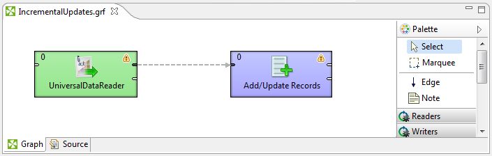 The graph for performing incremental updates requires a reader and the Add/Update Records connector.
