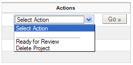 Selecting an action typically moves the project to the next task in the workflow. For example, selecting Ready for Review for the Author task activates the Content Review task.