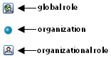 (Note: For organizations, you can use either the Organizations and Roles interface shown here or the Organizations interface, which shows only organizations. See Viewing Organizations for more information.)
