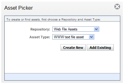 Click Add Asset to Project. This option appears only if the project is open for editing. The Asset Picker appears: