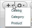 For example, in the Browse panel, at the top level of a catalog, you can create a catalog or a category. If you drill down one more level, into a category, you can create a catalog, category, or product. See Browse Panel for more information.