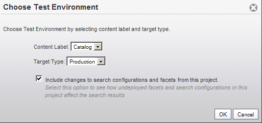 2. To specify the test environment that contains the products and SKUs you want to test, click Select and pick a content label and target type: