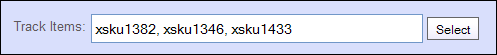 If you know the ID of the item you want to track, type it in the Track Items field, and use a comma to separate multiple items, as shown in the following figure. If items are indexed by product, enter a product ID, and if items are indexed by SKU, enter the SKU ID—even if the SKUs are grouped by product.