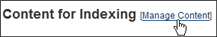 On the Projects tab, go to Projects and click on Your Project Name. In the Content for Indexing section of the project page, click the Manage Content link.