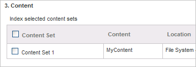 Select content to index. Some indexing tasks allow you to specify which content sets are indexed.