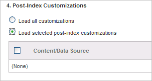 Select customizations to update. The indexing task you select may allow you to choose whether to apply all customizations, or only selected post-indexing customizations.
