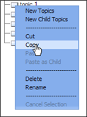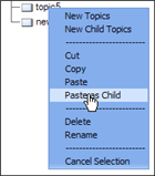 Right-click the topic under which you want to paste the moved topic. You cannot paste a subtopic back into the topic from which it was cut or copied.