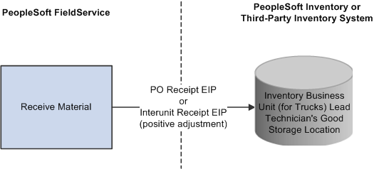 Both interunit and purchasing receipt transactions are staged to your inventory system so that the quantity in the storage location that is associated with the lead technician's good truck stock can be increased by the receipt quantity. If your system integrates with PeopleSoft Inventory, the system increases the quantity in the corresponding storage location when the Putaway process is run for the receipt.