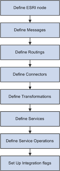 This flowchart illustrates the steps that you follow to set up Integration Broker for the ESRI integration: