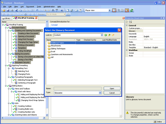 Navigate to the folder containing the desired glossary. The glossary is located in the WP folder.