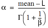 where (alpha) is the scale, (beta) is the shape, and L is the location.