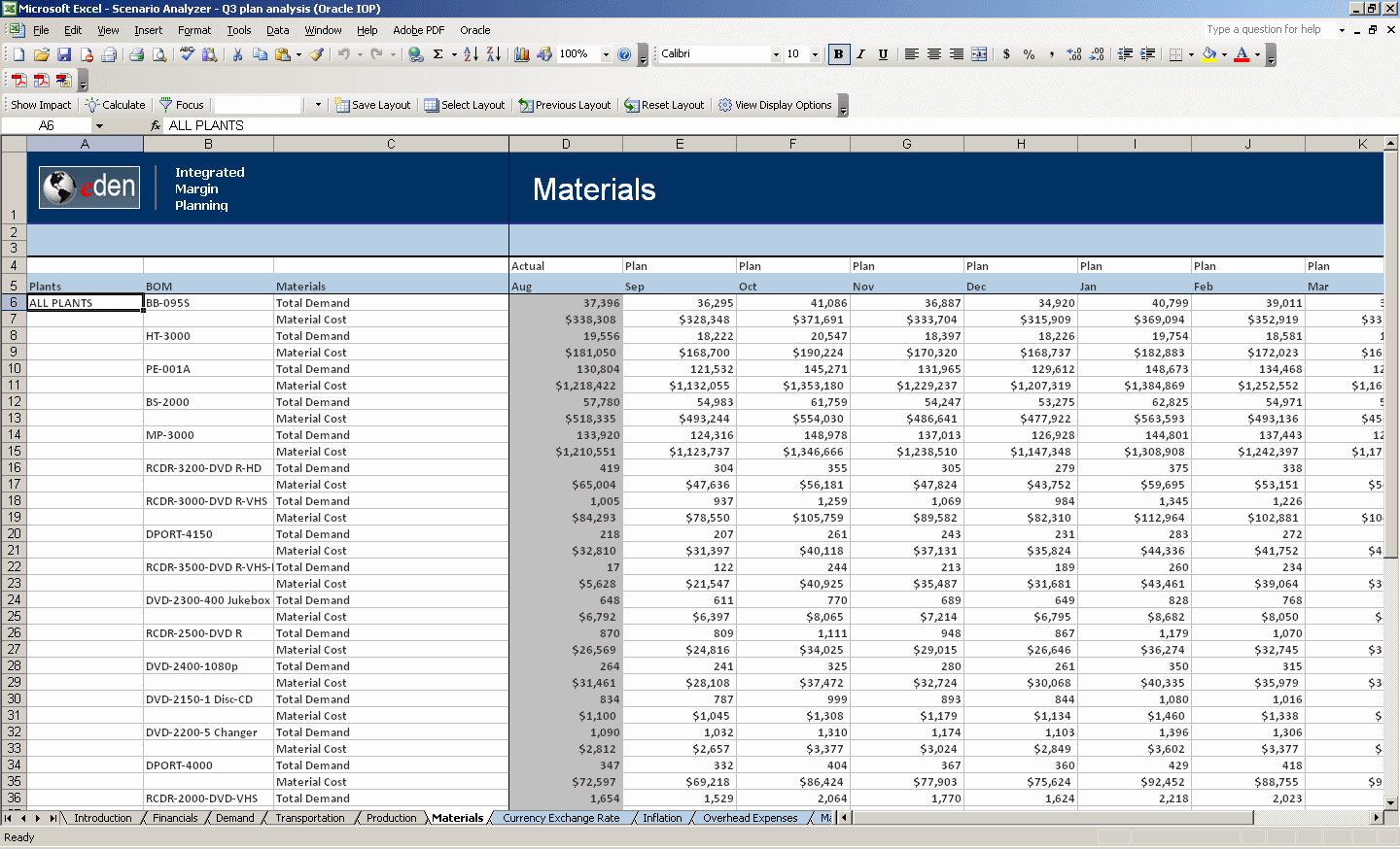 Note: | See Materials Cube for detailed information about the predefined content in the Materials analysis sheet. |