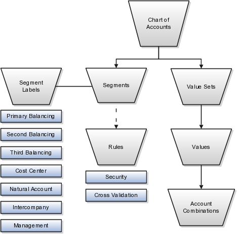 Every enterprise has three fundamental structures, legal, managerial, and functional, that are used to describe its operations and provide a basis for reporting. In Oracle Fusion, these structures are implemented using the chart of accounts and organizations. Although many alternative hierarchies can be implemented and used for reporting, you are likely to have one primary structure that organizes your business into divisions, business units, and departments aligned by your strategic objectives.