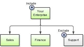 You want to apply the New Phone System Training calendar event to all workers in your enterprise except those working in the Support department. When an event applies to most of a hierarchy, it's efficient to use the Include tool to include the whole hierarchy in the coverage and then use the Exclude tool to leave out the exceptions.