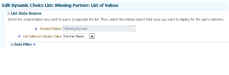 This figure shows the Edit Dynamic Choice List page for the custom Winning Partner dynamic choice list field.