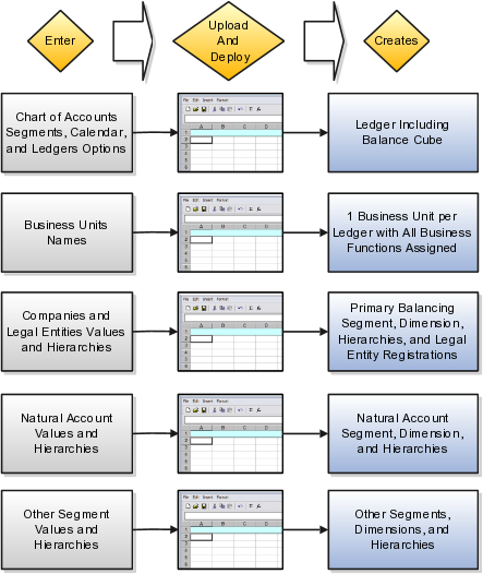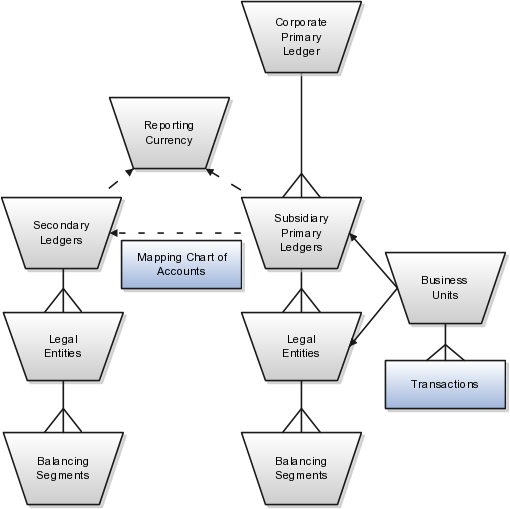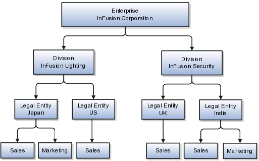 Every enterprise has three fundamental structures, legal, managerial, and functional, that are used to describe its operations and provide a basis for reporting. In Oracle Fusion, these structures are implemented using the chart of accounts and organizations. Although many alternative hierarchies can be implemented and used for reporting, you are likely to have one primary structure that organizes your business into divisions, business units, and departments aligned by your strategic objectives.