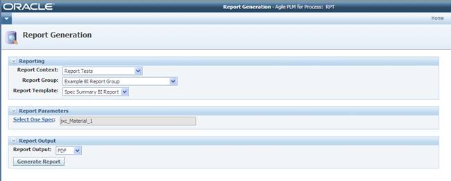 The Oracle Agile Product Lifecycle Management for Process application allows customers to integrate with reports that exist in an external reporting engine. Specifically, customers can configure the application suite to gather information from within the application and provide well-formatted reports that are generated in an external system.