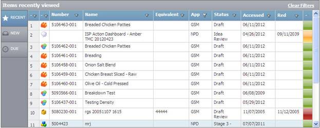 The following list gives different views of the action items listing. Click the Recent, New, or Due button to display the corresponding view.