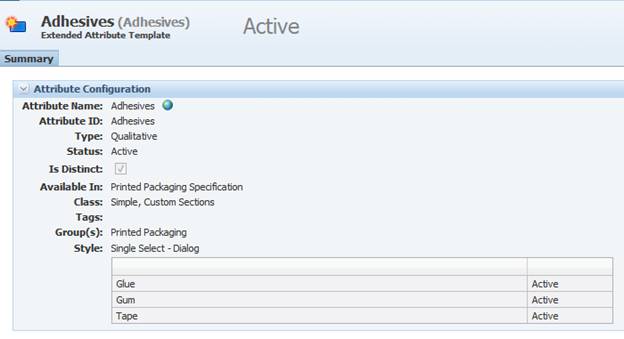 Attribute instance (e.g., GSM Specifications, Sourcing Approval, etc.) |