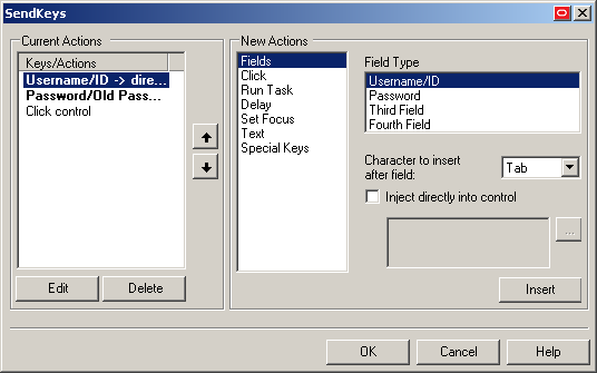 SendKeys方式を使用したフィールドまたはコントロールの構成