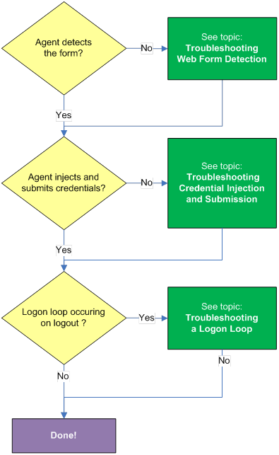 注意: ページがリフレッシュされるか、検出が始まった後に別のページのロードが始まった場合、Logon Managerは検出を中断し、そのページのロードが終了するまで待機した後に、500ミリ秒間の猶予期間タイマーを開始して、前述のとおりに経過するのを待ちます。