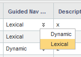 For each attribute in the Base view, the View Manager attributes list allows you to configure settings for how to handle selection and sorting of attribute values on the Guided Navigation component.