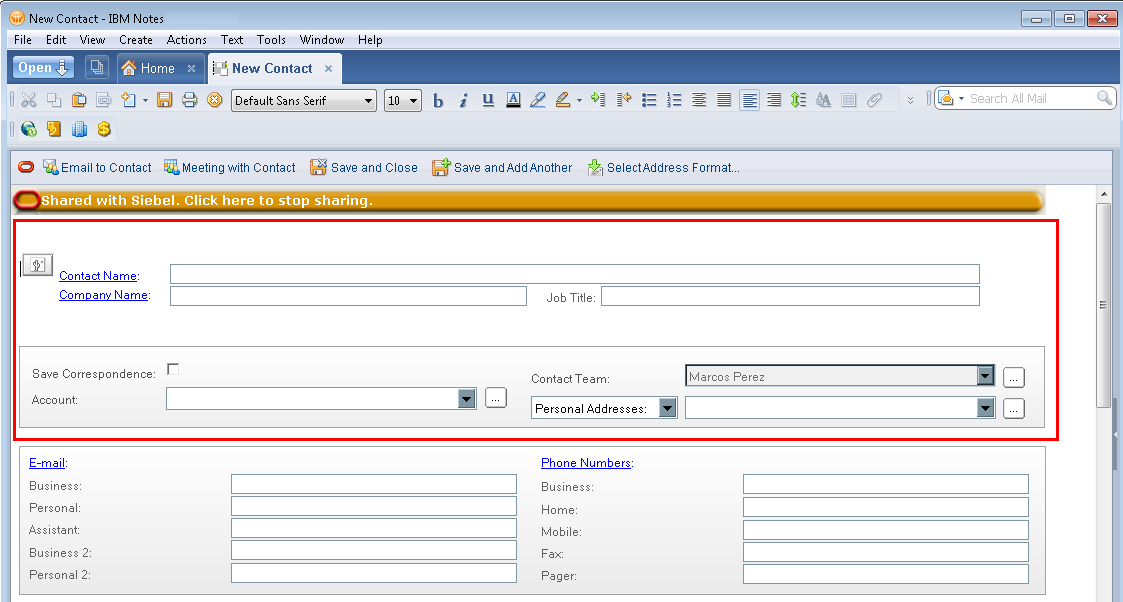 Siebel CRM Desktop for IBM Notes Administration Guide > Customizing Picklists > Process of Creating Predefined Picklists > Customizing the Physical Layout for the PicklistThis task is a step in Process of Creating Predefined Picklists. Figure 13 illustrates the Contact Details section of the contact form you customize in this example. You can use IBM Domino Designer to create this layout.