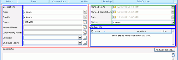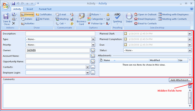 - Define the Comments section of the Activity form, as illustrated in the following figure:
