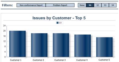 Vertical bar chart displaying open eQs by Primary Owner filter by Top five based on count. |