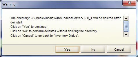 アンインストール・プロセスを開始する前に、Oracle Endeca Serverディレクトリから保持するファイルをバックアップしてください。Windowsでは、Oracle Endeca Serverディレクトリで開かれているファイルがないことを確認してください。