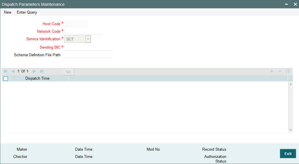 Dispatch time for auto generation of Domestic Low Value Payments /Direct Debit dispatch files can be maintained in this screen.