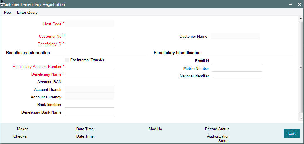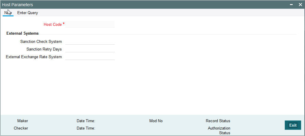 You can view sanction check details in the “Sanction Check System Summary” screen. You can invoke the ‘Sanction Check System Summary’ screen by typing ‘PMSSNKSM’ in the field at the top right corner of the application toolbar and clicking the adjoining arrow button.Click new button on the Application toolbar.