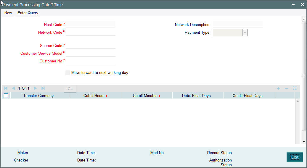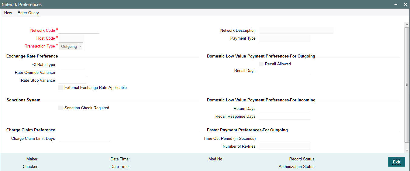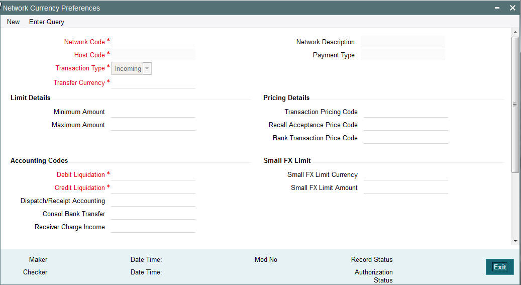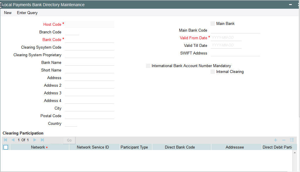 You can maintain clearing network that supports local payments using ‘Network Maintenance’ screen.